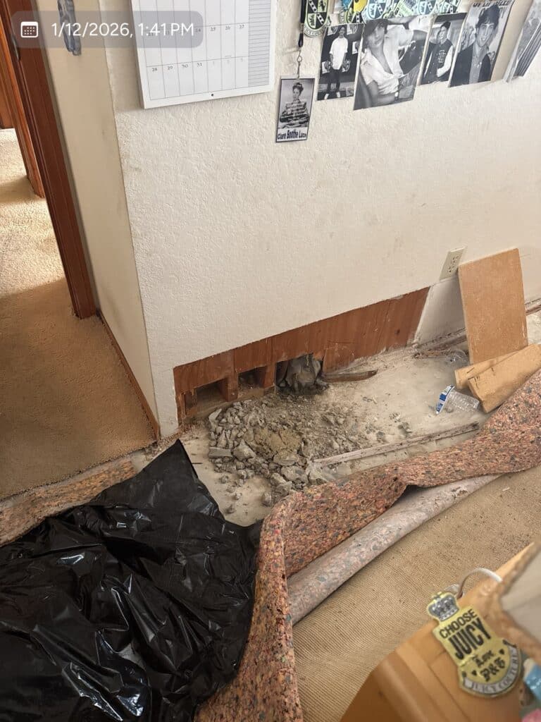 However, the true leak corresponded more closely to a bedroom area under carpet.