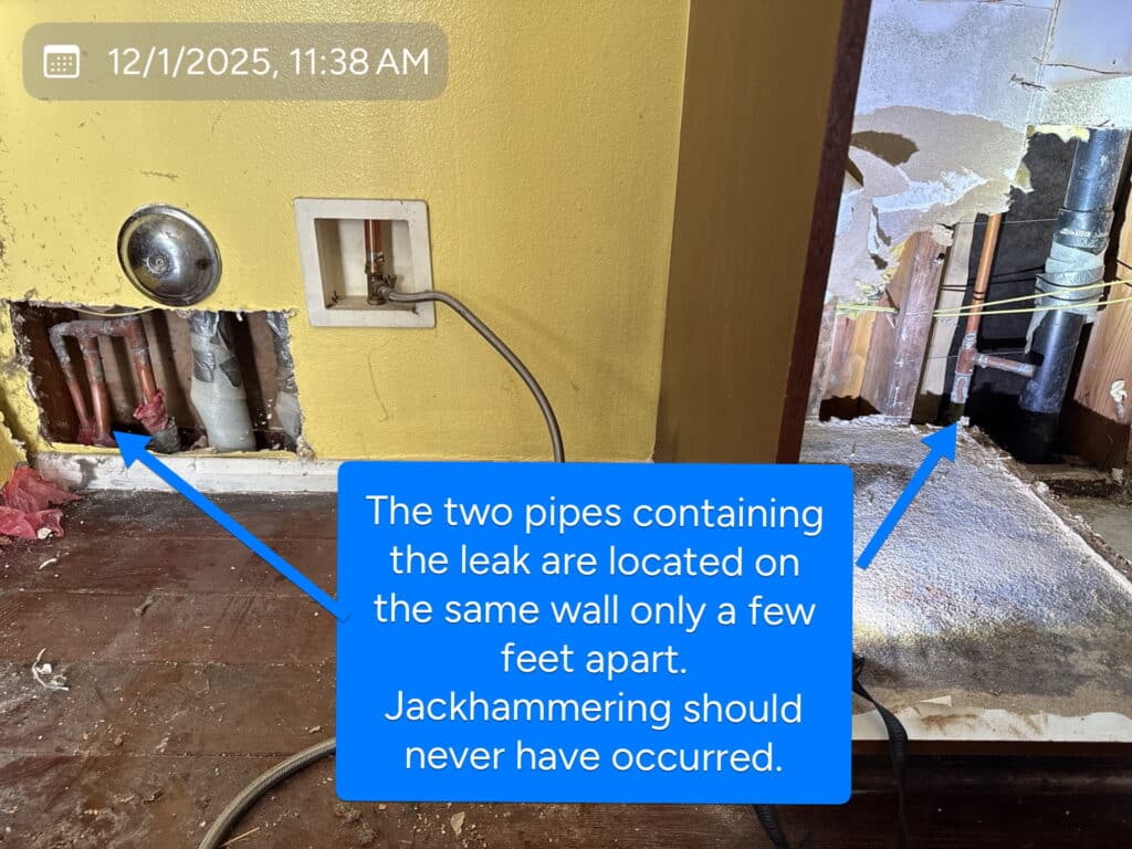 Pegasus Leak Detection was contacted after a referring company attempted to locate a leak using an in-house employee. The result was immediate and significant damage to the customer’s home—without the leak ever being identified.